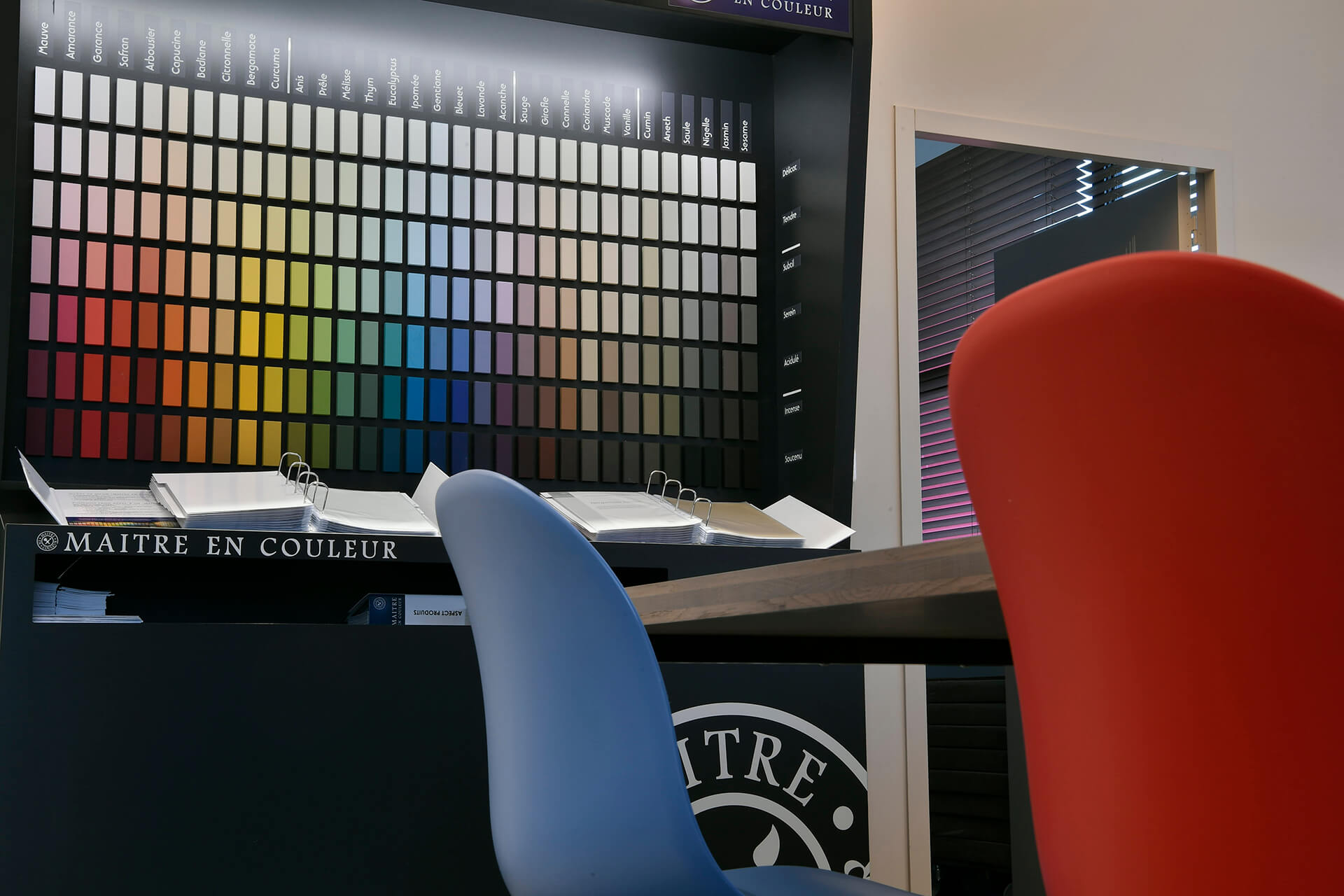 Notre mission ? Montrer la palette de compétences de cet artisan avec une exposition d’échantillons ou de panneaux matières, dans une ambiance lumineuse avec une table de réunion connectée au milieu de cet espace, un outil de préconisation au service des particuliers qui peuvent ainsi se projeter dans leur futur intérieur.